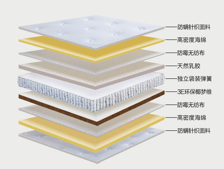 擁有富士安,健康快樂每一天!青島富士安家居有限公司是一家專業(yè)生產(chǎn)床墊的企業(yè),公司一直以市場為主導(dǎo),質(zhì)量為生命。不斷更新,引進(jìn)業(yè)內(nèi)先進(jìn)的高科技工藝、技術(shù)和設(shè)備。結(jié)合自身的雄厚實力,大膽創(chuàng)新,在床墊的研發(fā)、工藝、款式等方面不斷突破,率先倡導(dǎo)床墊綠色環(huán)保新理念,采用3E環(huán)保椰棕,及當(dāng)今適宜睡眠健康的天然椰子殼外層纖維作為主原料,制作過程無膠水、無甲醛、除潮吸濕、抑菌透氣,冬暖夏涼等。彈簧分為布袋彈簧與精鋼整網(wǎng)彈簧,彈性好、承托性較佳、透氣性較強(qiáng)、防銹耐用等優(yōu)點。天然乳膠其特點是不懸空、不塌陷、柔軟舒適,全方位支撐充分貼合身形,能有效緩解身體各部位壓力...